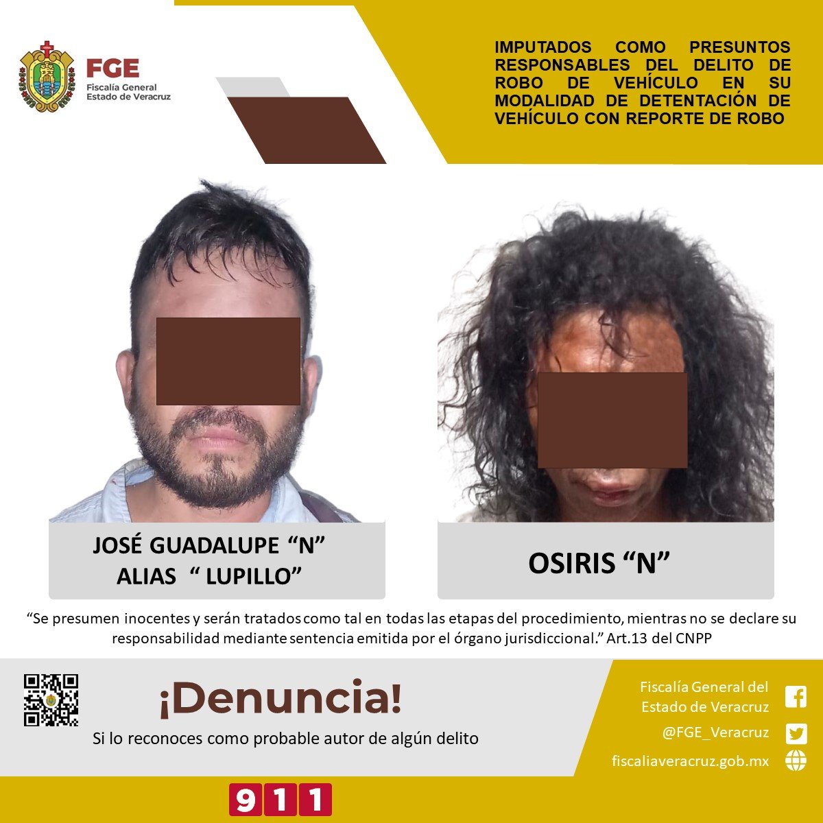 Minatitlán, Ver., 27 Marzo 2023.- La Fiscalía Regional Coatzacoalcos realizó imputación en contra de José Guadalupe “N” alias “Lupillo” y Osiris “N” como presuntos responsables del delito de robo de vehículo en su modalidad de detentación de vehículo con reporte de robo.