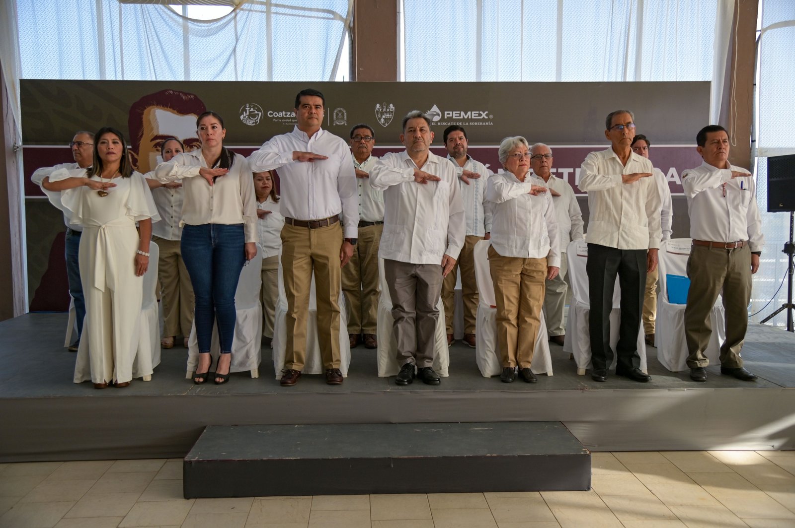 Como parte del evento, alumnos de la Escuela Primaria Tomasa Valdez Viuda de Alemán (Artículo 123) declamaron la poesía «Expropiación Petrolera», rindiendo homenaje a este momento trascendental de la historia nacional. Además, se llevó a cabo los honores a la Bandera y la entonación del Himno Nacional, acompañados por la Orquesta de Música Popular del Ayuntamiento.