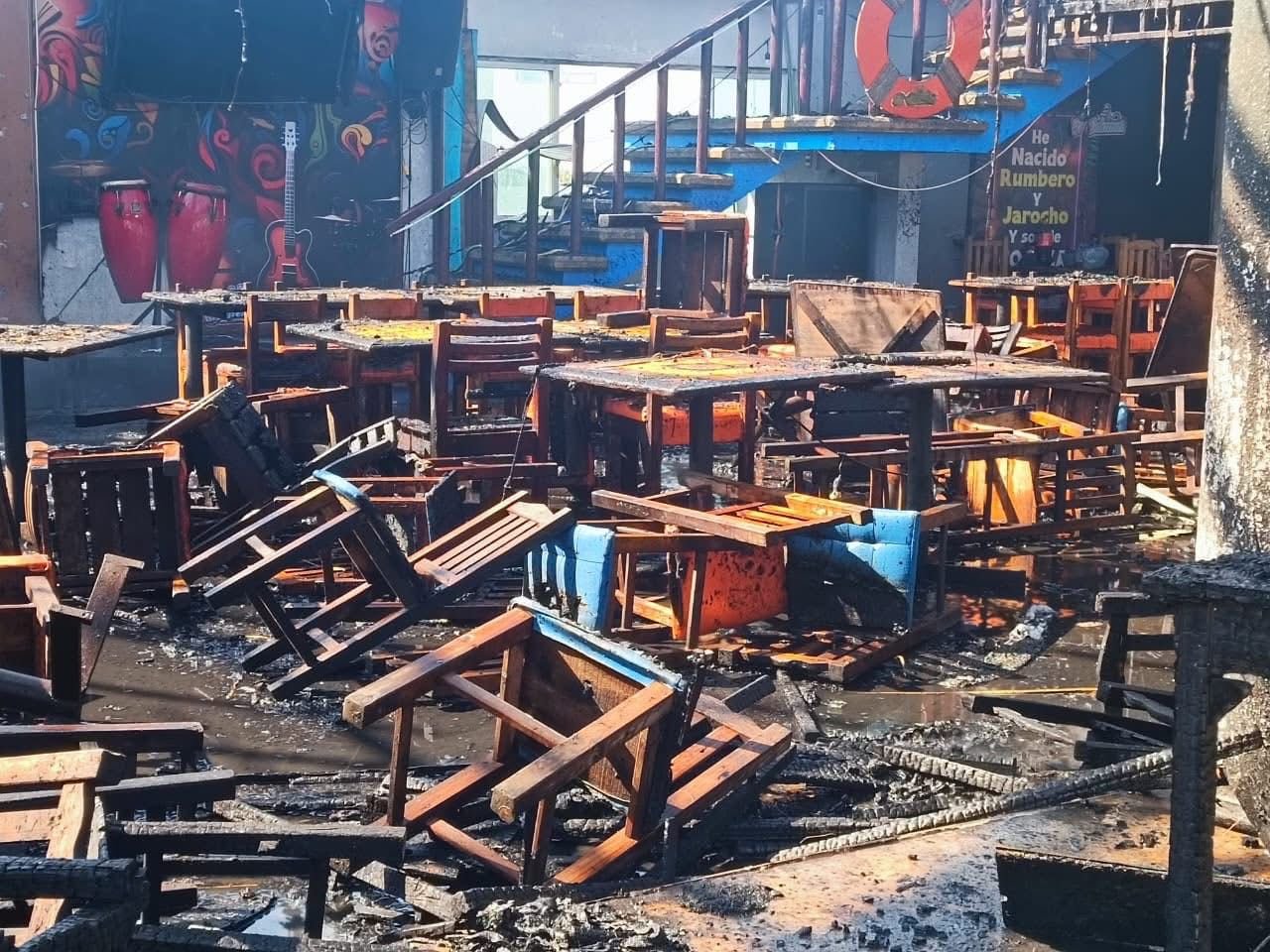 Presuntamente lanzaron artefactos explosivos hacia la palapa de palma, por lo que de inmediato se generó el incendio, consumiendo todo a su paso. Antes de escapar, los responsables dejaron una lona con mensajes de amenazas en la entrada principal del lugar.