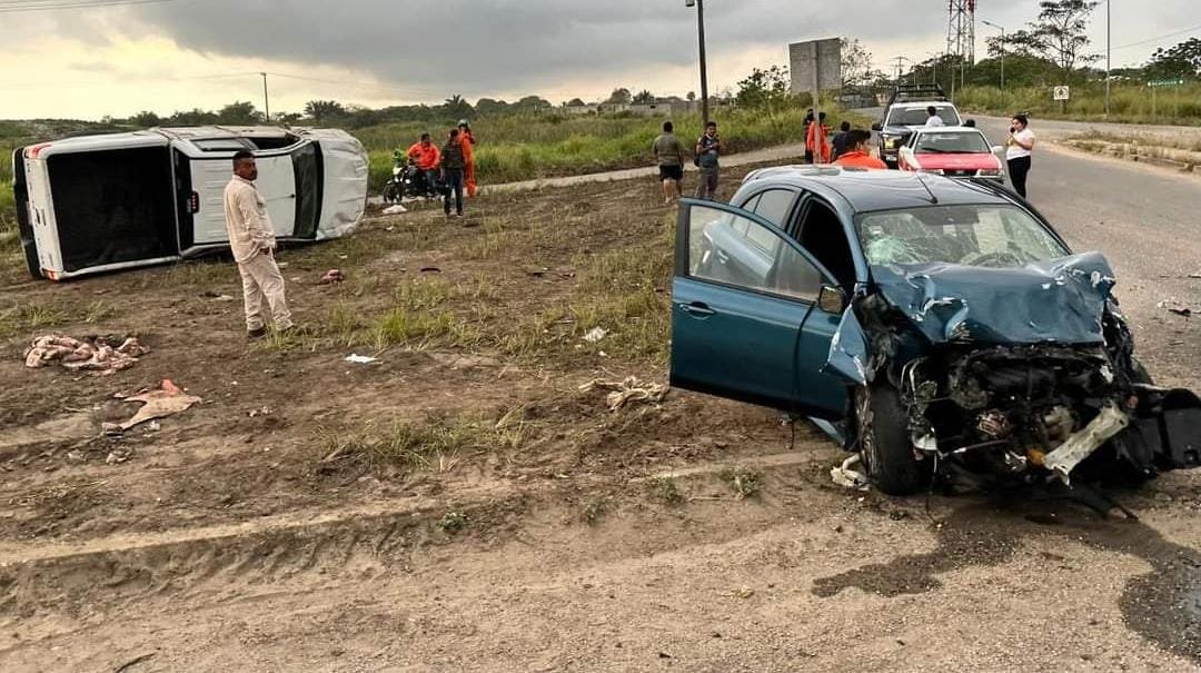 Coatzacoalcos, Ver.-Al menos dos personas resultaron policontundidas, después de que chocaron dos autos, y uno de ellos acabo volcado sobre la carretera «Las Matas», a la altura de una gasolinera ubicada a la entrada del municipio de Minatitlán.