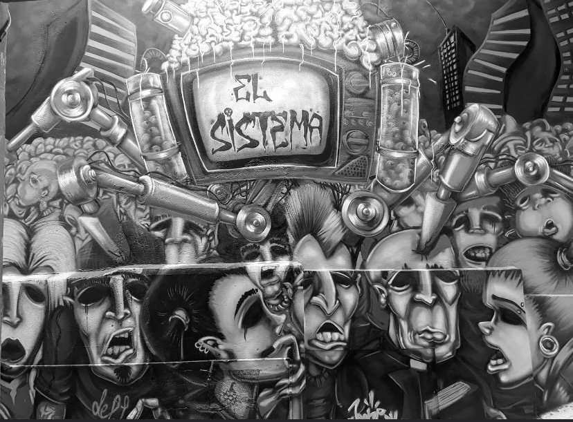 Bones era un experto en el Graffiti Art, a su mejor obra le llamó “El sistema”, tal vez porque siempre sintió ir en contra de la corriente, y se oponía a ser controlado por máquinas (Televisión, celular, religión), era fiel a sus ideas de libertad, a sus pensamientos y a su estilo de vida.