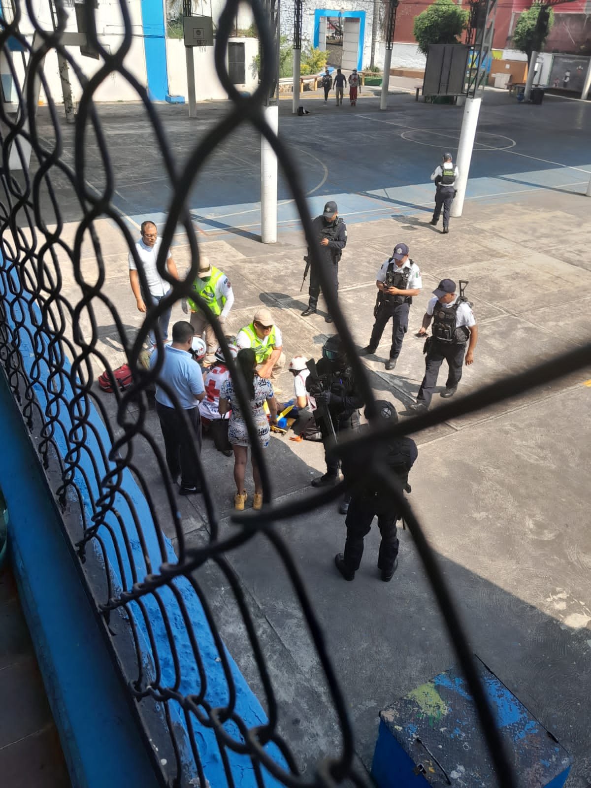 Al caer al pavimento sufrió lesiones de gravedad en extremidades de pierna y brazos, por lo que de inmediato las autoridades educativas llamaron a los paramédicos de la Cruz Roja y al acudir éstos al lugar, fue trasladado de inmediato a la clínica del Instituto Mexicano del Seguro Social (IMSS) de la Ciudad de los Treinta Caballeros.