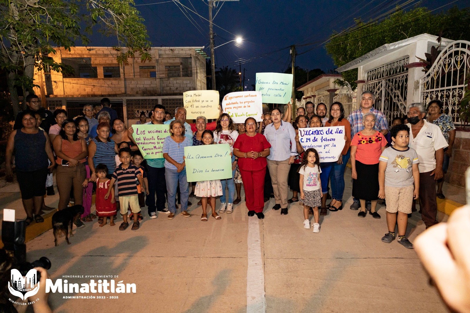 Minatitlán, Ver. – Vecinos de la calle 14 de febrero, recibieron a la Presidenta Municipal, Dra. Carmen Medel Palma con mucha alegría, pues después de muchos años hoy ven diferente la avenida por donde transitan diariamente.