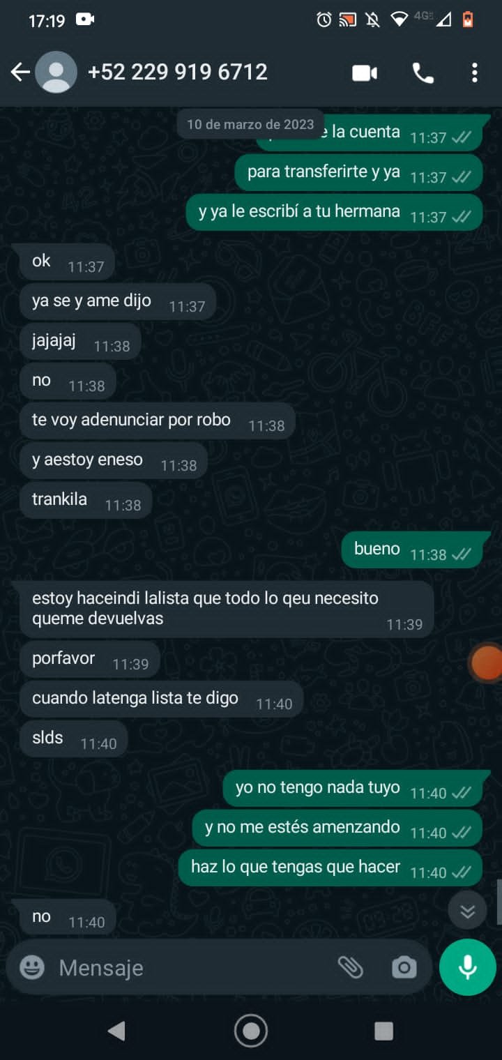 Aunado a ello, decidió hacer la denuncia pública, ya que las amenazas han incrementado, y ahora también increpa a familiares y amigos.