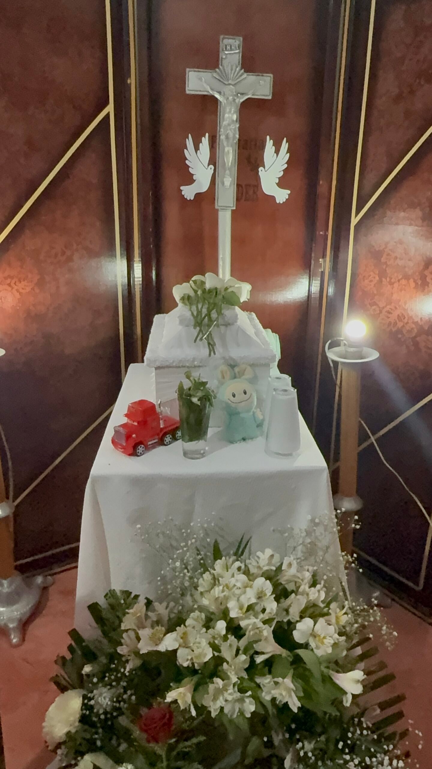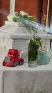 El cuerpo de Tiago está siendo velado en Minatitlán, en una caja pequeña color blanco, rodeado de los primeros juguetes que tenían para su llegada, la familia busca justicia, señalan al hospital como los responsables de la muerte del pequeño.