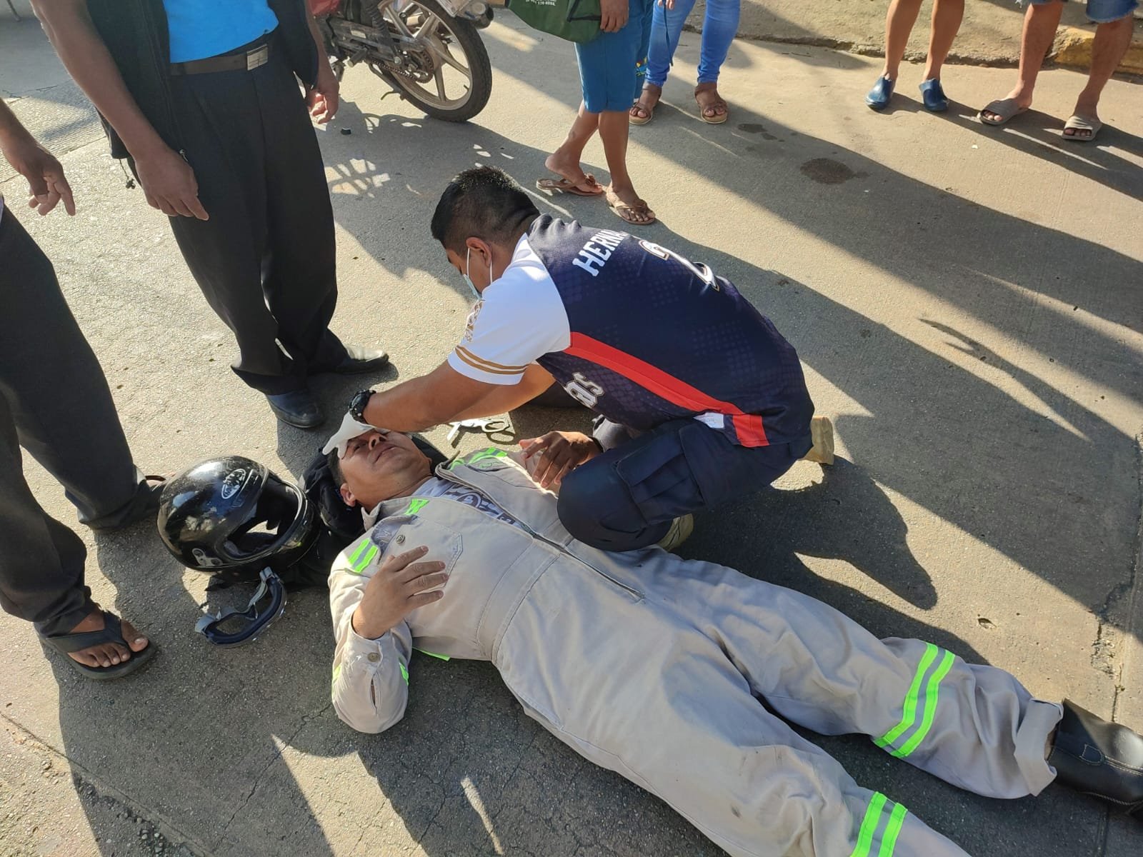 Esta mañana de lunes dos personas resultaron con lesiones luego de haber derrapado en su motocicleta.