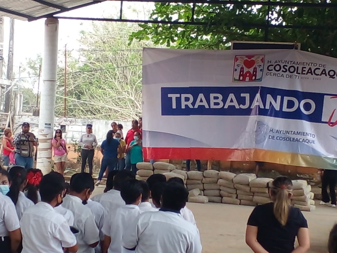 En la presencia de alumnos, personal docente y padres de familia, realizaron la entrega de bultos de cemento para la construcción del piso ubicado en el domo de la escuela Mariano Escobedo ubicado en localidad de San Pedro Mártir, que beneficiará a cientos de alumnos de los turnos matutinos y vespertino, así como a las próximas generaciones de estudiantes, que contarán con mejores espacios para su rendimiento académico.
