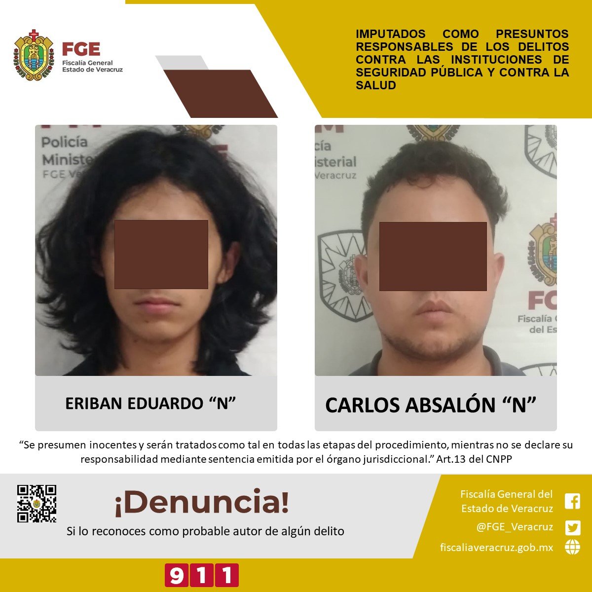 Coatzacoalcos, Ver., 23 Marzo 2023.- La Fiscalía Regional Coatzacoalcos realizó imputación en contra de Eriban Eduardo “N” como presunto responsable de los delitos contra las instituciones de seguridad pública y contra la salud y en contra de Carlos Absalón “N” como presunto responsable del delito contra la salud.