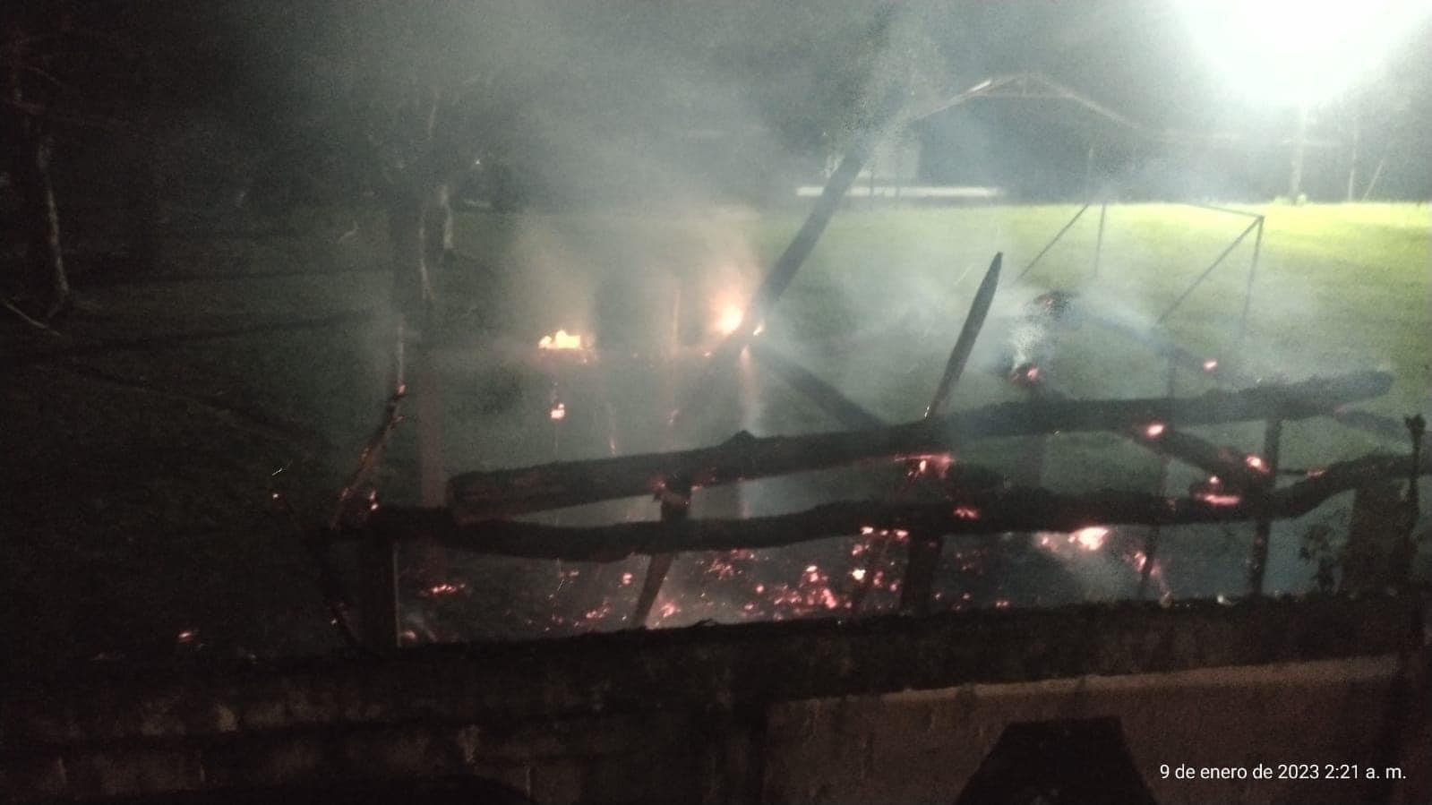 Se incendió palapa del terreno parroquial en Cosoleacaque, podría haber sido provocado.