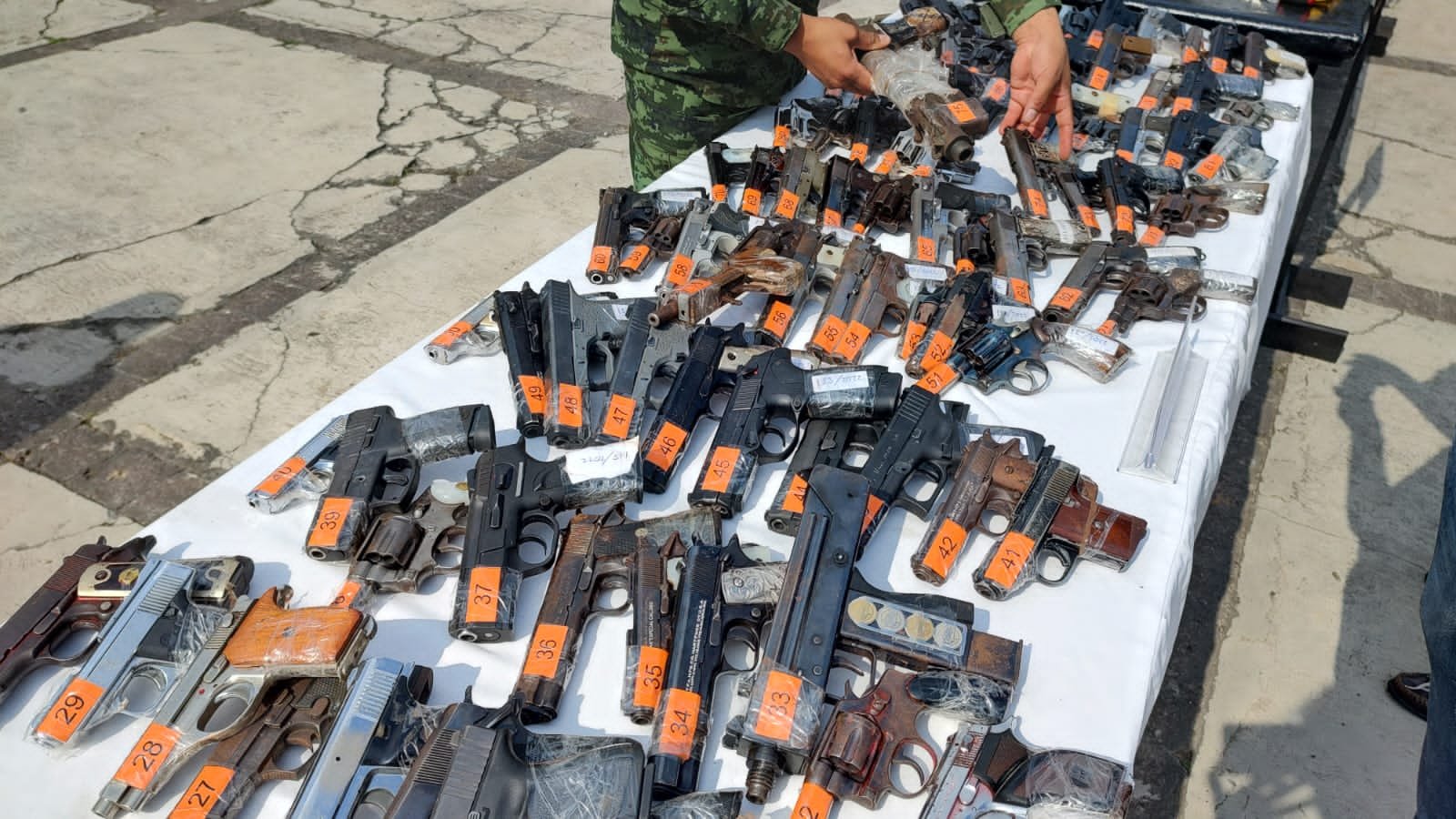 En la explanada del 63 Batallón de Infantería, se inutilizaron 139 armas largas y cortas, 3 mil 22 cartuchos útiles y 154 cargadores.