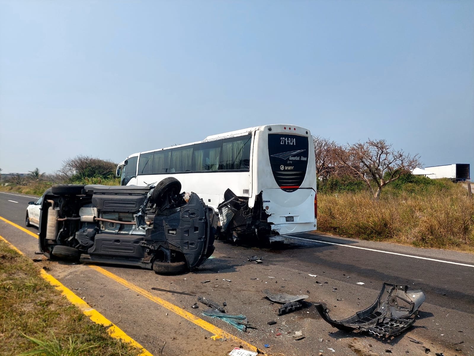 Alvarado, Ver.- Un elemento de la Secretaría de Marina identificado como, Jaime Darío Meléndez, chocó su camioneta contra un autobús de turismo y volcó sobre el bulevar Riviera Veracruzana.