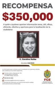 Coatzacoalcos, Ver. – La Fiscalía General del Estado (FGE) de Veracruz dio a conocer que otorgará un recompensa de hasta 700 mil pesos, a quien ofrezca información fidedigna que ayude a la localización de Caroline y Frank, pareja estadounidense que, presuntamente desapareció en Coatzacoalcos, desde julio del 2024.
