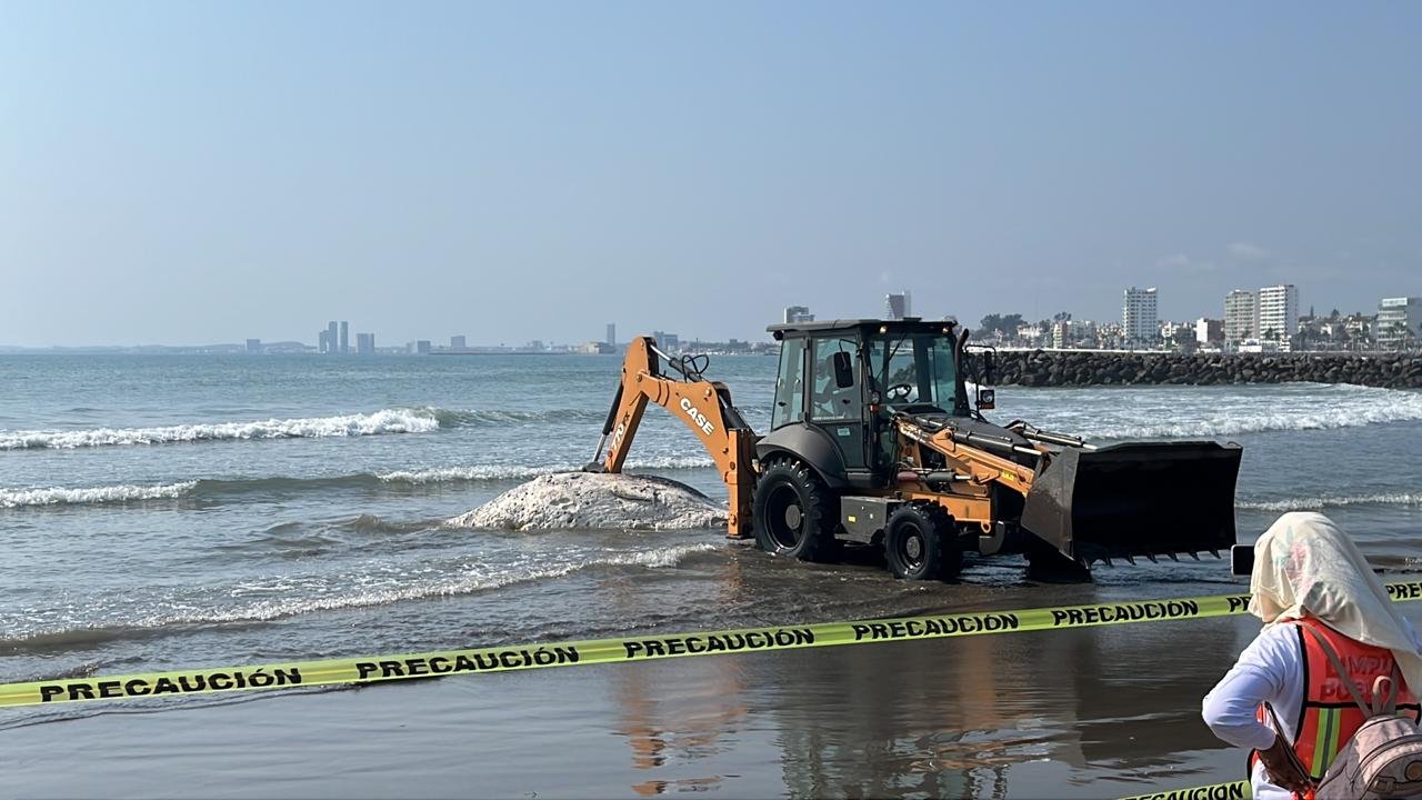 El aviso a las unidades de emergencia se dio poco antes de las 7 de la mañana de este sábado; a la llegada del personal de Protección Civil de Boca del Río, los elementos constataron que la ballena se encontraba muerta y en avanzado estado de descomposición.