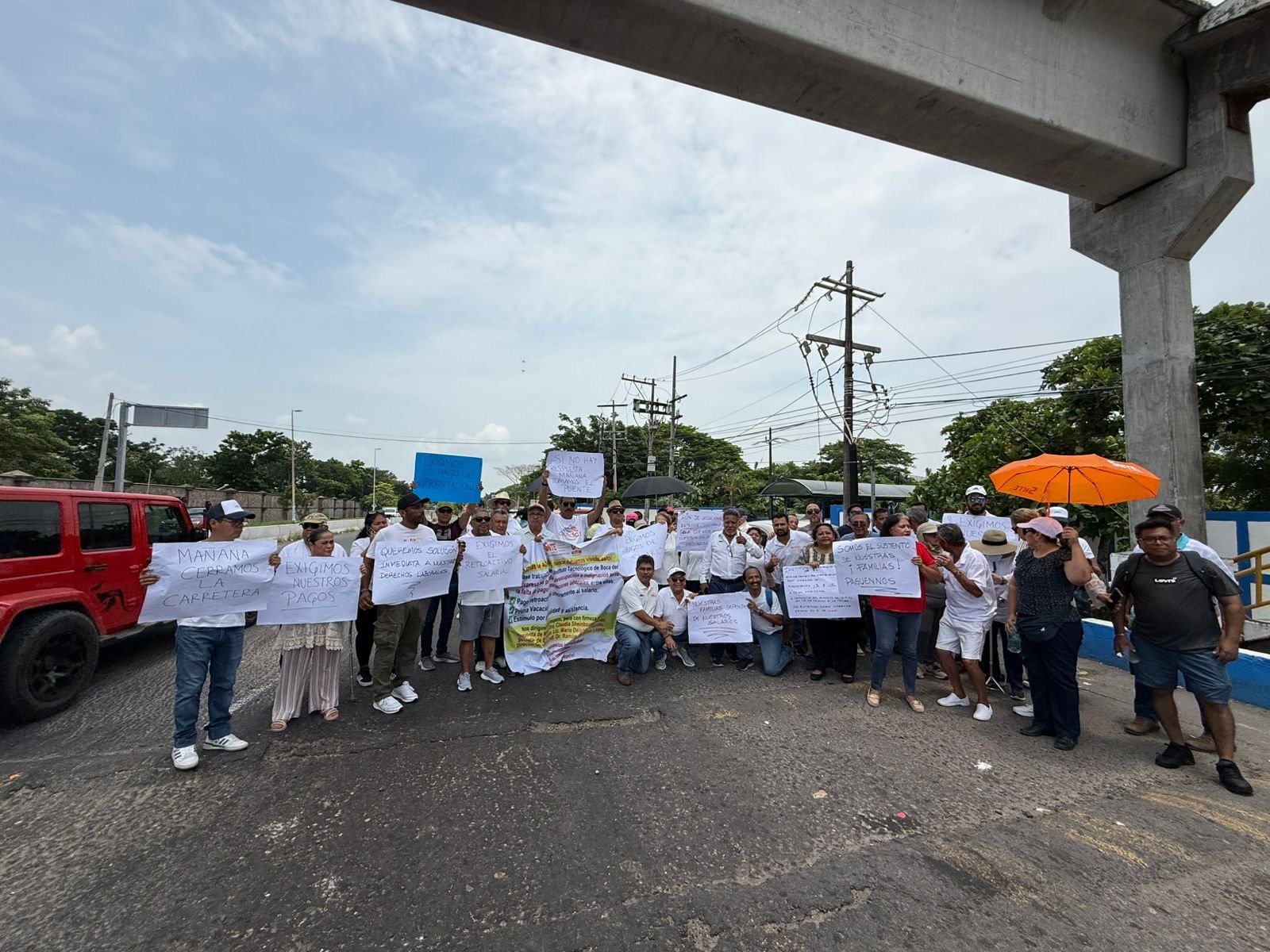 Boca del Río, Ver.- Docentes y personal administrativo del Instituto Tecnológico de Boca del Río bloquearon parcialmente la carretera con rumbo a la localidad de Paso del Toro ante la falta de pagos.