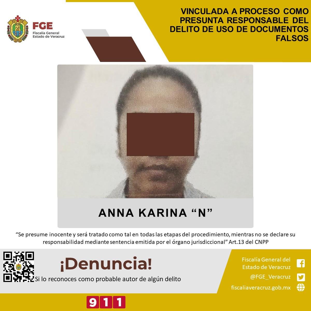 Minatitlán, Ver., 28 de marzo 2023.- La Fiscalía Regional Coatzacoalcos obtuvo vinculación a proceso en contra de Anna Karina “N” como presunta responsable del delito de uso de documentos falsos en agravio de la víctima identificada con las iniciales S.C.G.