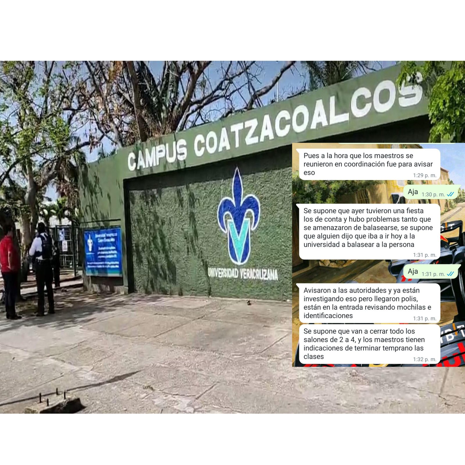 Esto llevó a que este sábado, tanto elementos del IPAX, como de la Policía Estatal rondaran todo el día el campus UV Coatzacoalcos, aunado a que, a decir de los propios alumnos, se llevaron a cabo revisiones de mochilas y pertenencias de quienes acudieron a tomar clases este fin de semana.
