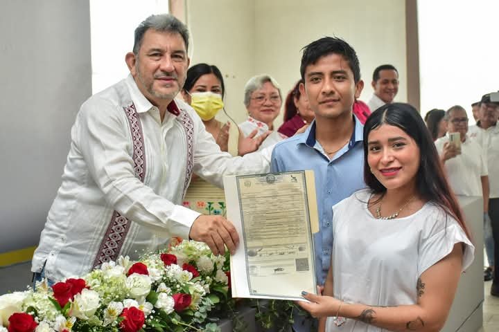 El alcalde de Coatzacoalcos, Amado Cruz Malpica, destacó la importancia de las Bodas Colectivas realizadas en el municipio, subrayando que más allá del amor y los sentimientos, el matrimonio brinda certeza jurídica a las parejas y sus familias.