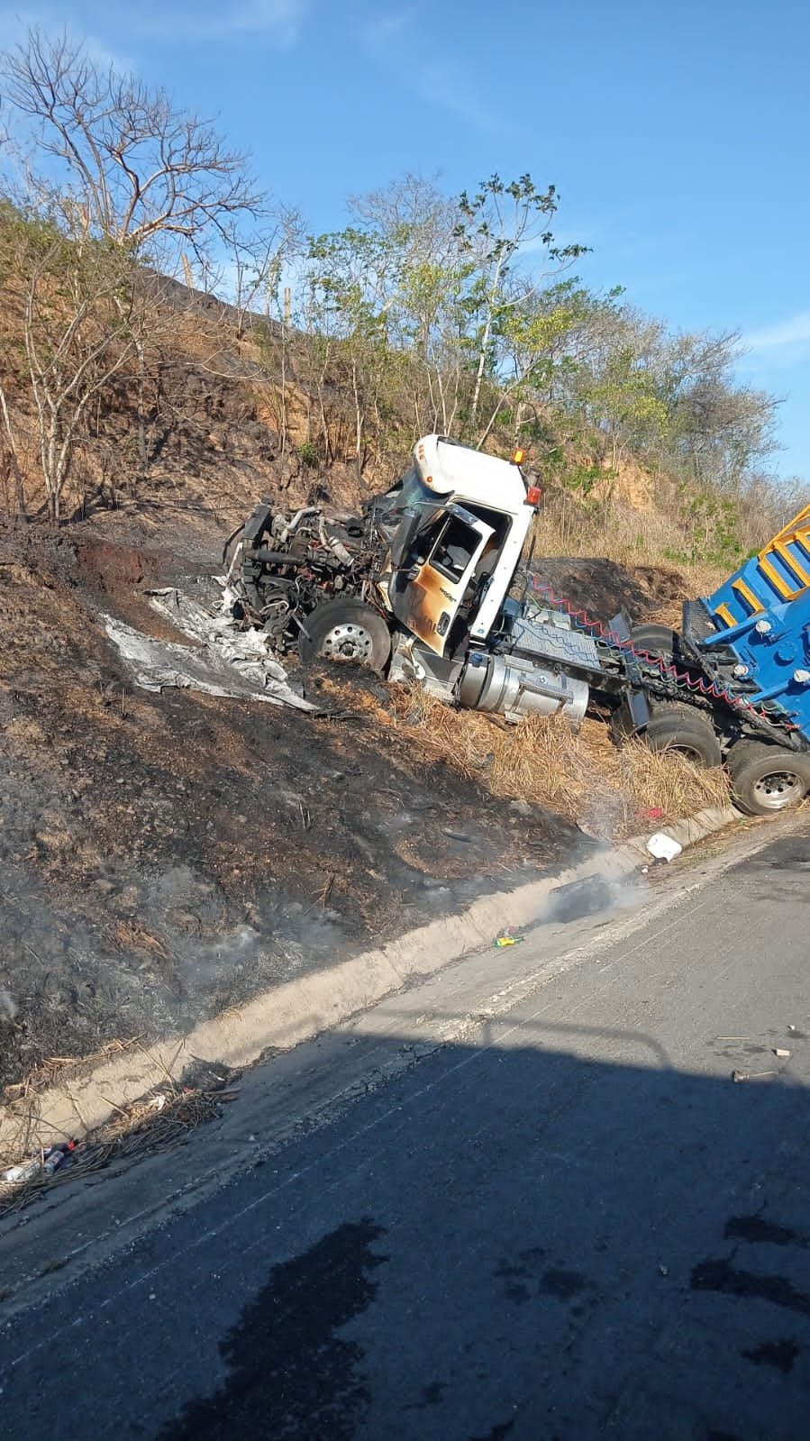 La tarde del MARTES 04 de abril, el conductor un tracto camión Internacional ProStar de la empresa TICSA ,chocó por alcance con otro tracto camión y perdió de control de la unidad, saliendose del camino y provocando que se incendiara,esto en el kilómetro 153+500 de la autopista la Tinaja _Cosoleacaque , a la altura del entronque a la localidad Mata Verde ,perteneciente a Juan Rodríguez Clara .