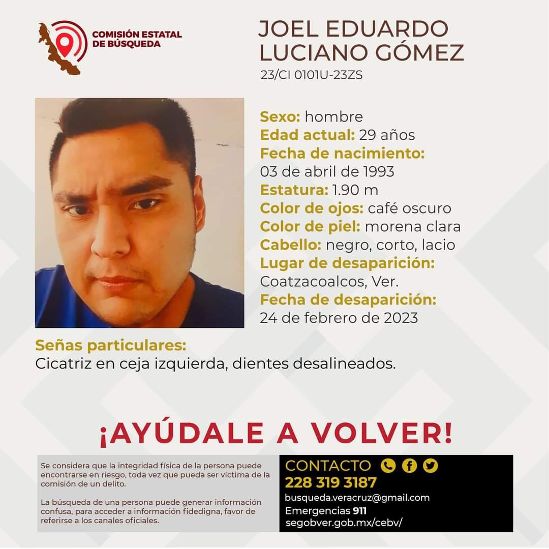 Apenas hace unas horas la familia de Joel Eduardo Luciano realizó una jornada de búsqueda y colocación de fichas con su fotografía en diferentes colonias de Coatzacoalcos, dónde denunciaron que fue privado de la libertad el pasado 24 de febrero.