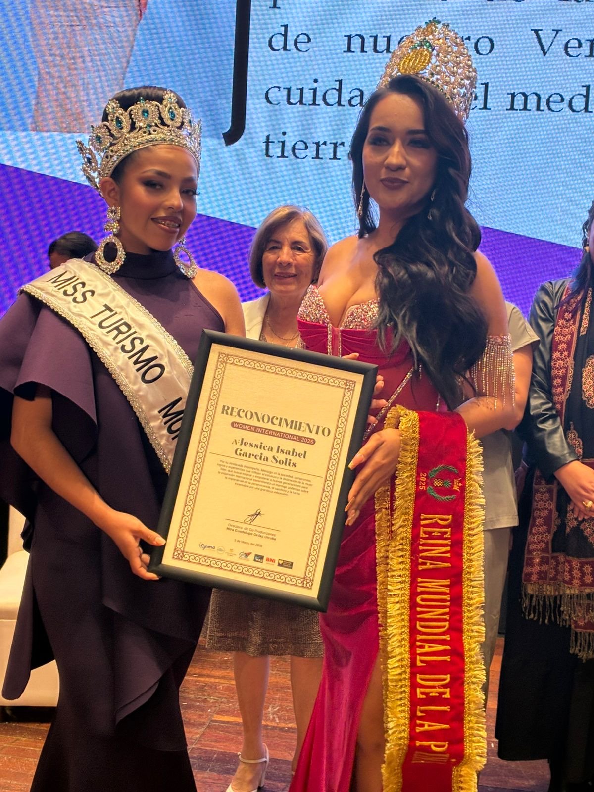 Veracruz, Ver.- En el marco del Foro Internacional de la Mujer, la veracruzana Jessica Solís, Reina Mundial de la Piña México, recibió el reconocimiento “Women International 2026”.