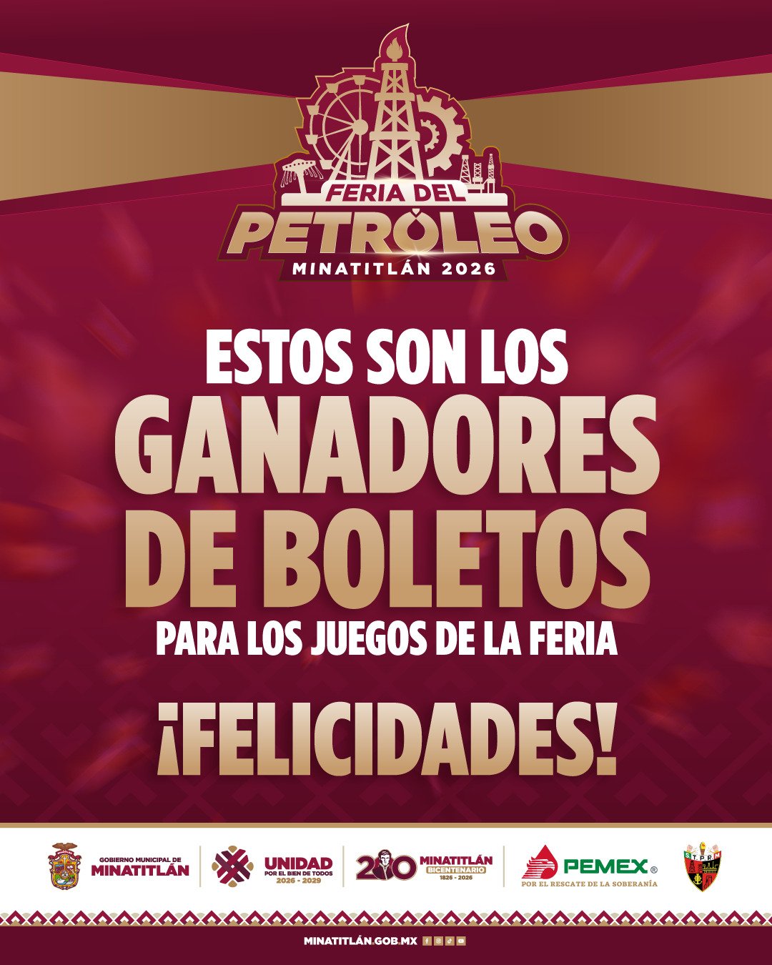Ya tenemos a las personas afortunadas que disfrutarán de los juegos mecánicos de la Feria del Petróleo Minatitlán 2026.